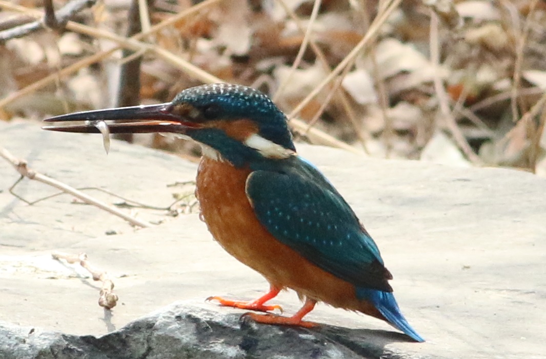 岸边石头上吃鱼的翠鸟(摄影/刘沿江)