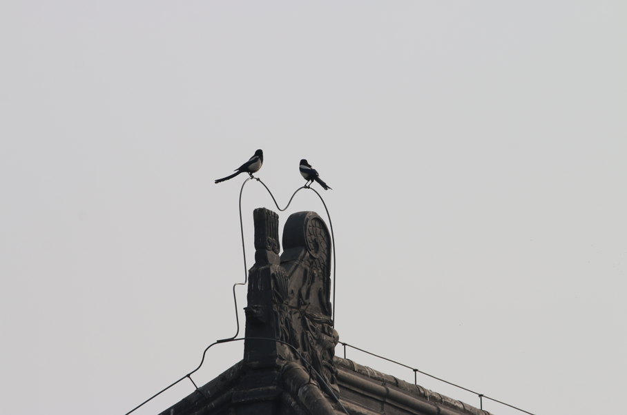 赛克勒考古博物馆屋顶的两只喜鹊(摄影刘仕阳)