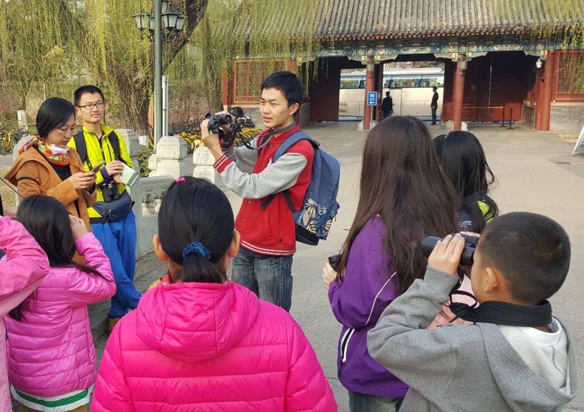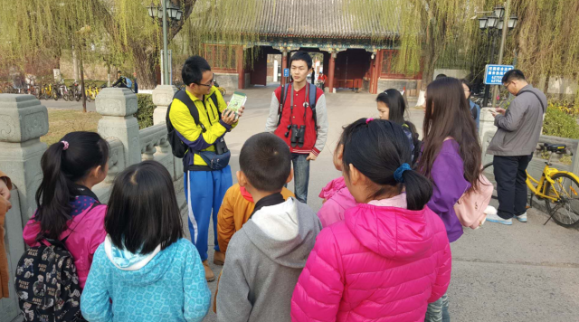 2018年3月31日,雏鹰公益社组织了一次燕园观鸟活动。来自北大附小的10余名小学生和学生家长,在北京大学绿色生命协会两位资深同学刘沿江、陈熙尔的带领下,在北大校园内进行了一次别开生面的观鸟活动。