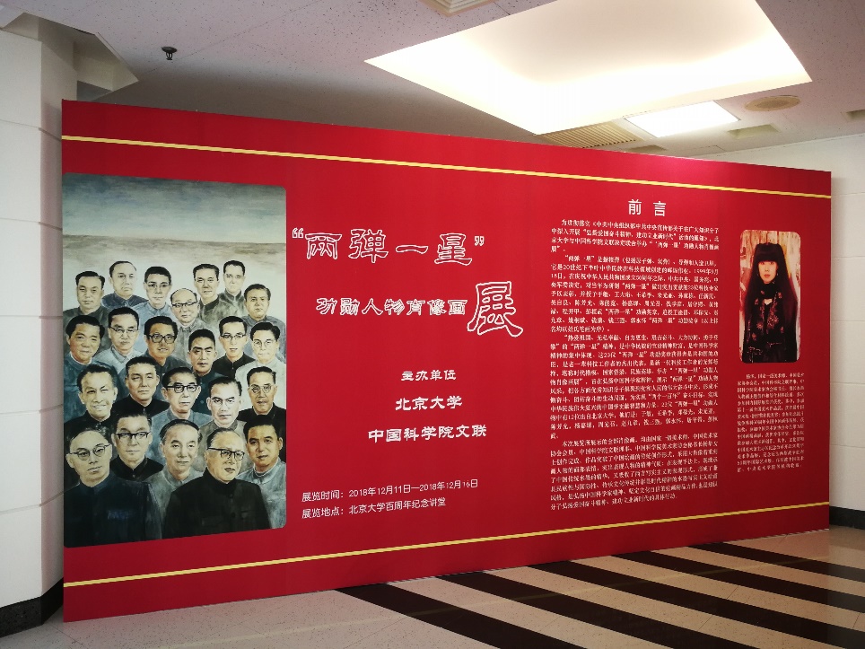 “两弹一星”功勋人物肖像画展正在北京大学百周年纪念讲堂二层展廊展出,画家杨华为每一位“两弹一星”元勋画像,再现他们的气质面貌。