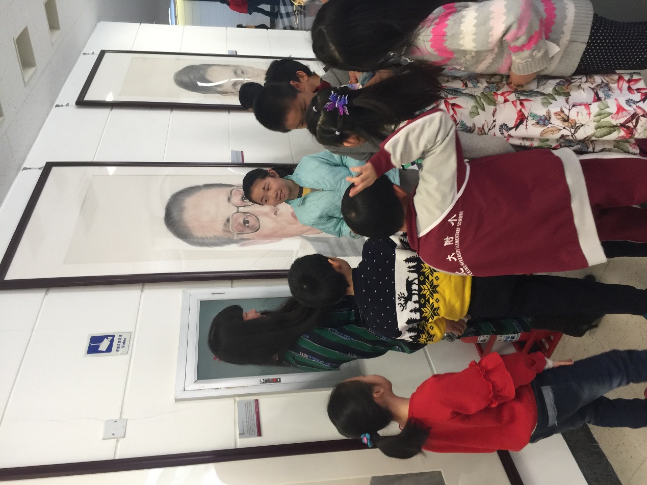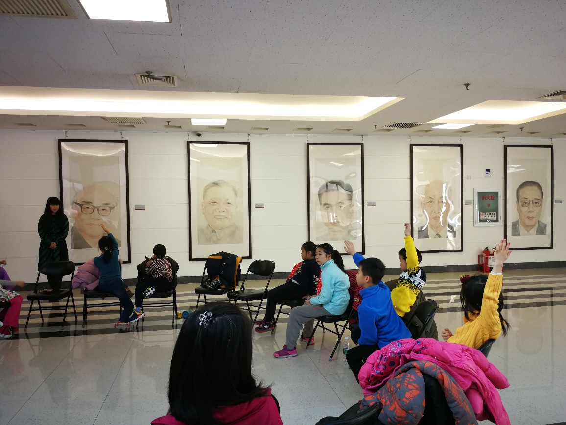 杨华阿姨正是被科学家的故事深深感动,才能画出这么生动的肖像。接着她给小朋友们讲解了她是怎么画的。她首先查阅了很多资料和档案,充分了解了科学家的事迹,把他们当作朋友一样熟悉并且充满了感情,然后她根据相关的照片,采用中国传统的水墨材料,加上西方的写实主义画法,画出了一张张巨幅肖像,一共用了两年多的时间。