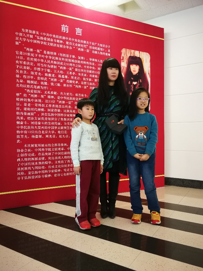 十点整,领队杨晓雨老师召集小朋友们围坐一圈。原以为这位画家是像科学家一样的白发苍苍的老爷爷,没想到却是一位长发飘飘的美女阿姨。杨华阿姨不仅是国家一级美术师,还是科学院文联理事,为创作“两弹一星”功勋人物肖像,她不仅在画法上进行了创新,更是对这些功勋的资料进行了深入的研读。这次活动,既是杨华画家与小朋友们的一次艺术交流,也是一次科普活动。