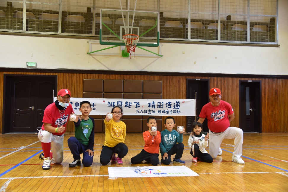 从小在电视上看到国外棒球运动很热闹,这次小熊投手少儿棒球俱乐部的两位教练带着雏鹰社的队员们,在北大一体二层馆内以趣味亲子的方式体验了棒球活动。除了不同寻常的热身动作外,还有很多令我难忘的精彩瞬间,同时也收获了许多相关棒球的常识和比赛规则与技巧。