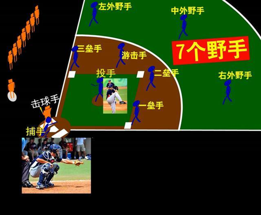 棒球的比赛场地是一个直角的扇形。直角内为界内,直角外是界外,但界内的范围是无限延伸的,因此外延场地比足球场还要大。两个队分为进攻方和防守方,各有9名队员,两个队轮流攻守。进攻方只有击球手独自上场,其他8名队友都在外等候。击球手在对方9个人的围追堵截下,沿逆时针方向,依次攻占一垒二垒三垒,最后跑回本垒,这样就能让进攻方得到1分。