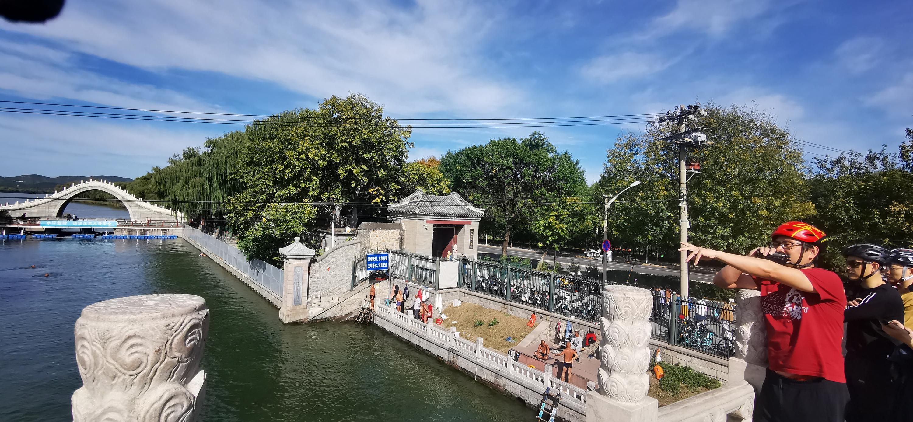 到达颐和园南如意门后,队员停车,全体登上位于昆玉河上的石拱桥,聆听卢老师讲述这条皇家御河的悠久历史与北大故事,然后背对河面粼粼波光,合影留念,记录这场新队员首次外训经历。
