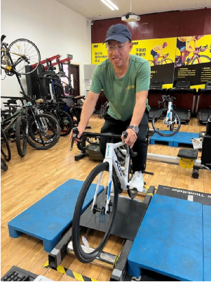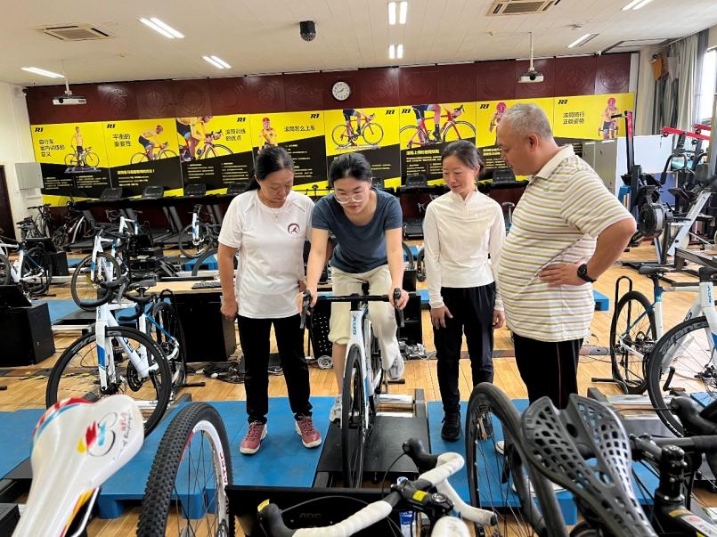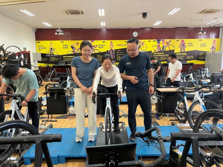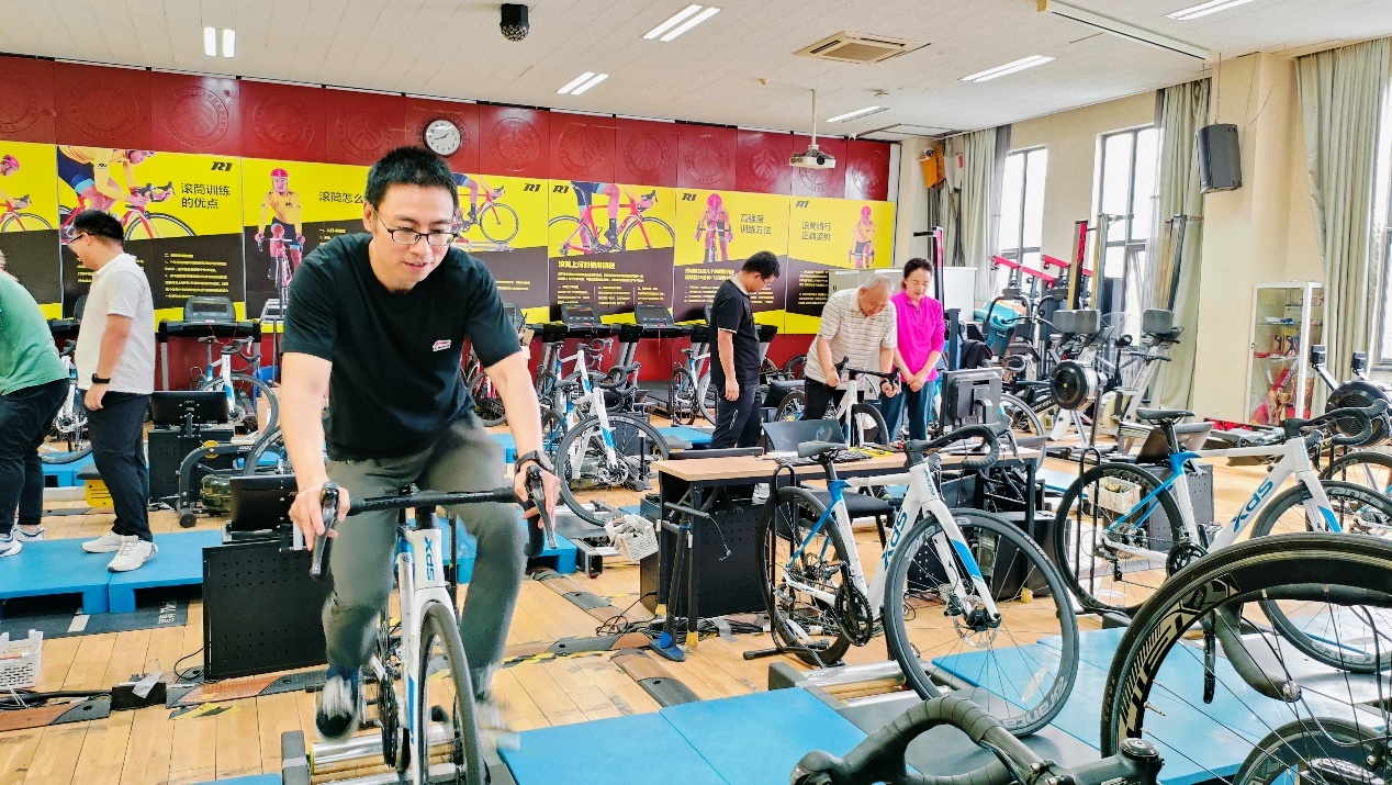 已经熟悉变速车的老会员们参加了骑行台的训练,理事骨干讲解如何正确调整座椅高度和位置,如何掌握骑行台的平衡,如何正确的在骑行台上进行训练,他们3人一组进行学习尝试。