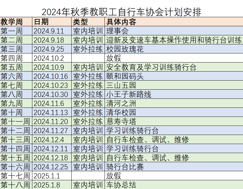 每周三中午12:00至13:00为固定训练时间,若遇到天气或学校活动等,协会会提前进行相应调整。除此之外,我们还将开展一系列精彩的活动,如夜骑、周末或假期的活动,会提前发布活动通知。