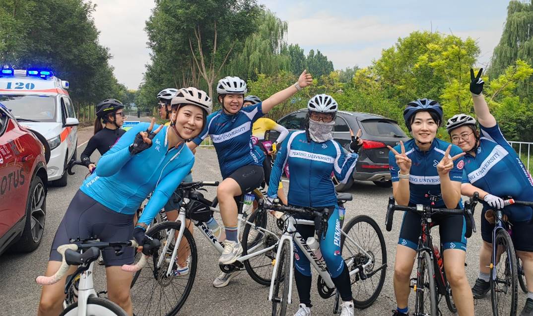 周小燕老师:这次比赛最怕给团队拖后腿,出发前还在担心是否能完赛,15公里处开始有点儿缺氧发晕,这种状态持续了几分钟以后就好多啦,1:34完赛,结果太满意啦。完赛后大家相约一起吃美味的午饭,一起看燃灯塔,一起骑行温榆河绿道,一起骑行回北大,120km的骑行已经超出身体极限了,大家都是杠杠的,太厉害了!!