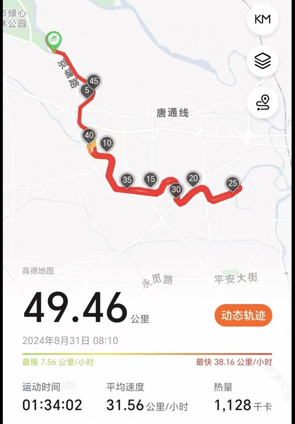 范爱文老师:车协驭风社有12名队员参加"2024年北京自行车联赛”,看闫老师的通知说车协其他成员可以一起乘大巴到通州来个58公里休闲骑,于是我拉着老公临时入队。比赛开始前,我们与贾老师和高老师4人啦啦队在赛道里骑到10公里处,被赛事管理人员提醒第一波队员快到了,赶紧离开赛道。我们停在路边看比赛,寻找驭风社队员的身影拍照,等最后出发的队员差不多通过了,我们尾随跟着骑完了全程50公里,吃过午饭去看燃灯塔(北大博雅塔的母版,然后沿着温榆河和清河绿道骑回家,绿道中间几经中断(期待将来能完全贯通,当然现在也是非常友好的骑行绿道了),全程120公里,一直在追逐前队,被比赛队员直接拉爆就这样人生第一次单日记录诞生了