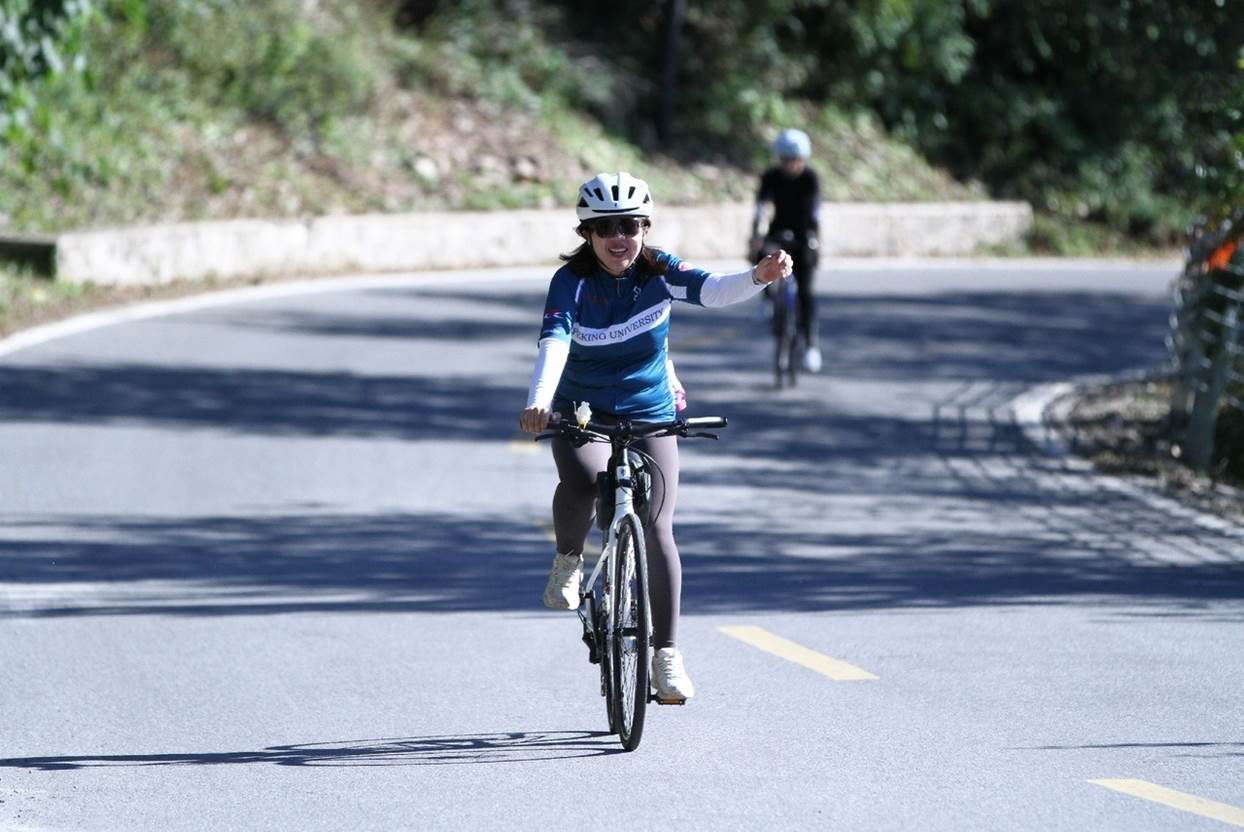 赛前,我们与王海东老师共同制定了安全完赛的目标。汽笛声中,比赛正式拉开帷幕。前7公里的平缓路段,我们利用背山和林荫的凉爽,调整状态,保持踏频,为后续的挑战积蓄力量。