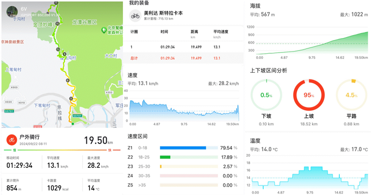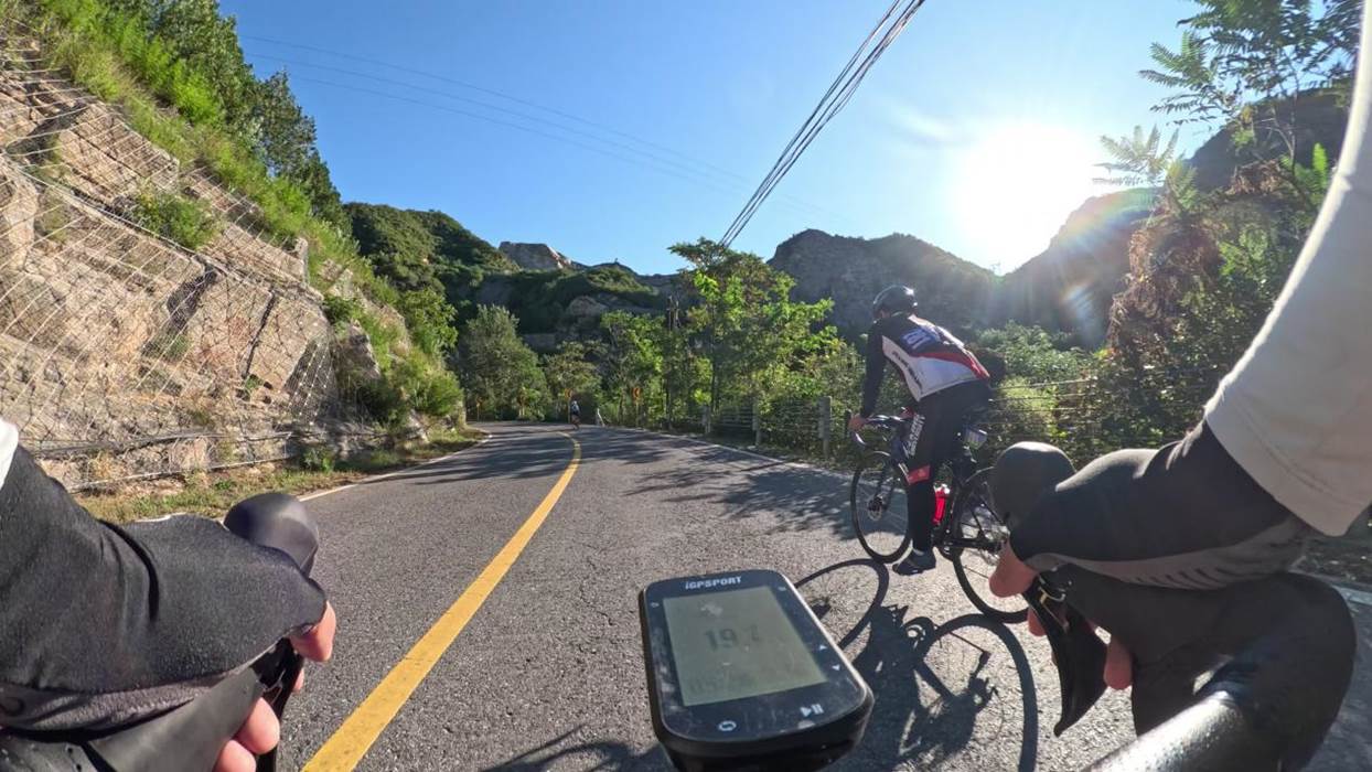 王海东老师首次体验妙峰山赛段,就展现出非凡的活力与激情,一路领先,均速近30km/h。然而,随着坡度的增加,我逐渐追上了他,为了确保车队完赛人数,我决定超越王老师,独自前行,挑战自我。