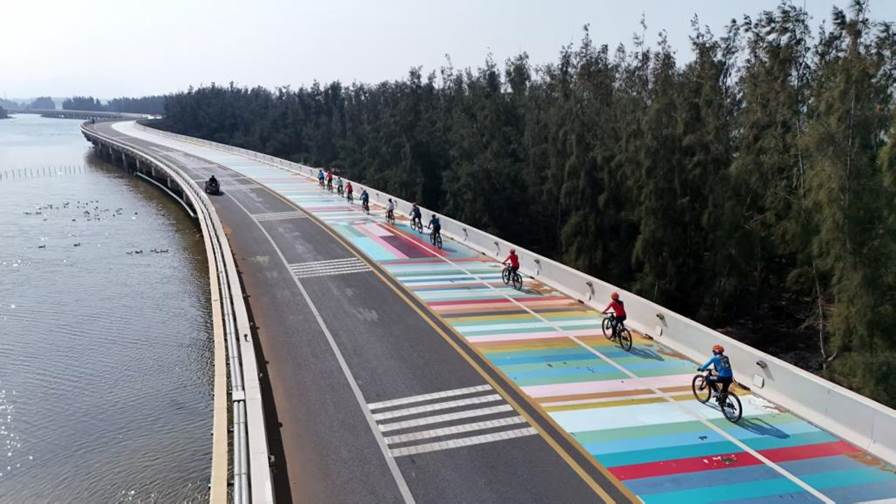 此次骑行路线以新开通的海南环岛旅游公路为主,骑行团一路穿行于火山石海岸、风力发电机组、海边森林、海盐晒场之中,沐浴着和煦的海风,大家互相鼓励,与对向而来的骑友互道一声加油,充分享受着人与人、人与自然的交融和谐。