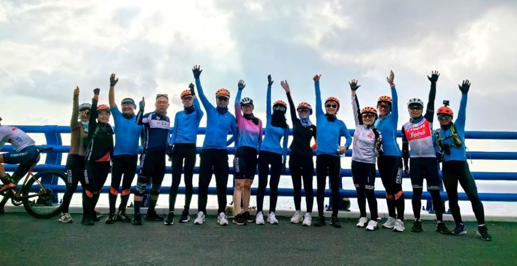骑行团助力环湖跑,共同庆祝中华人民共和国成立75周年
