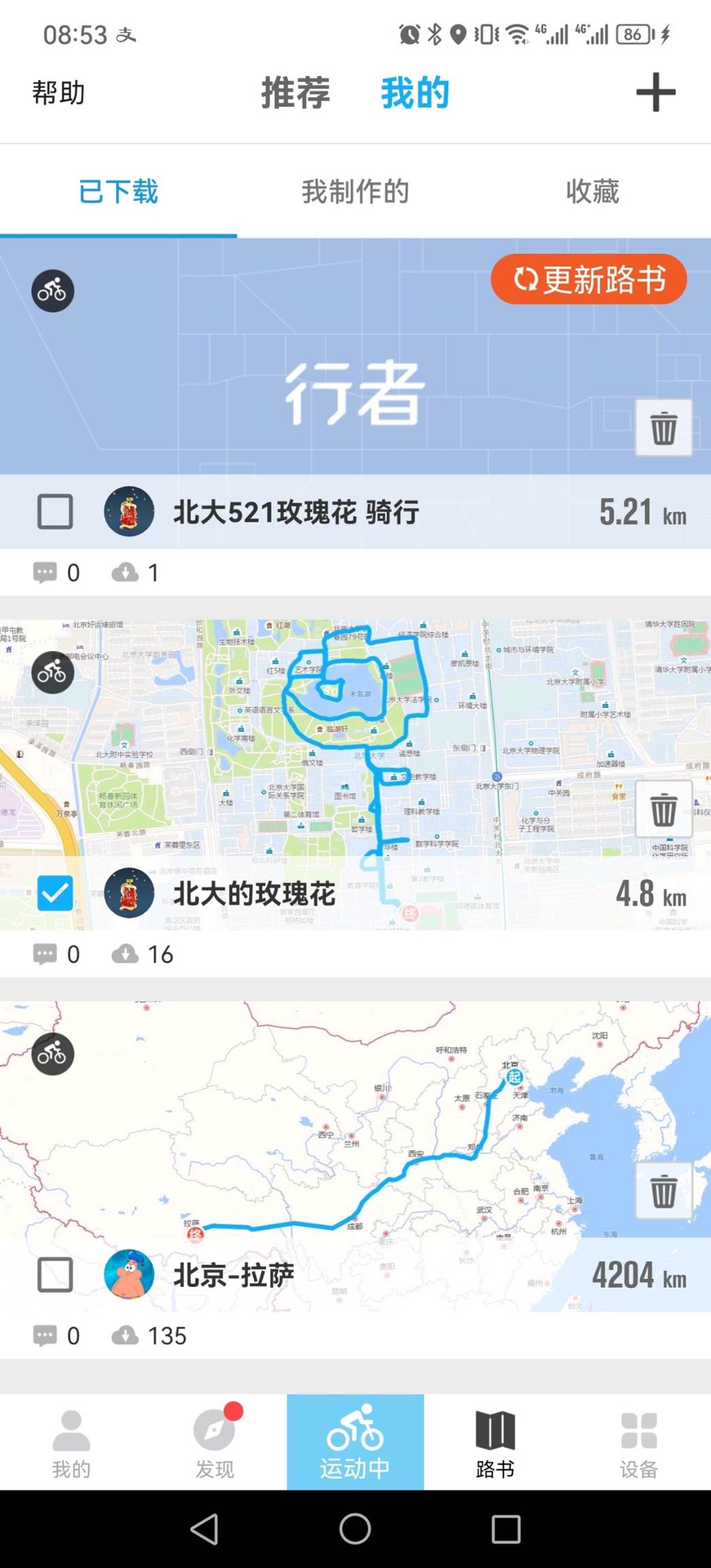 第六步,骑行结束后,记得把选中的路书去掉对勾,否则每次骑行,这个路书都在你的地图里。
