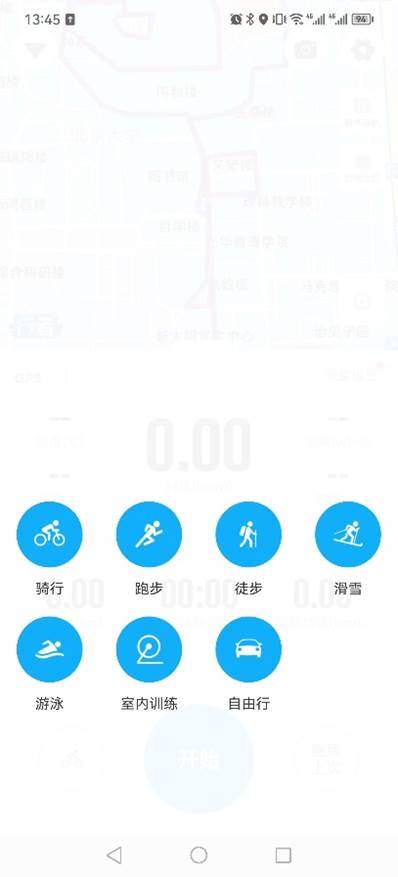 第五步,点击开始,骑行开始记录轨迹,是蓝色线路,若偏离紫色线路,请看地图寻找道路。