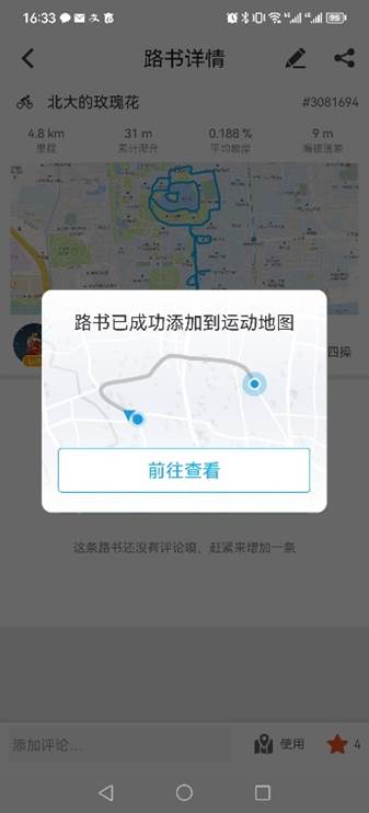 第三步,点击路书底端的下载 ,进入路书界面,点击“使用”,点击“前往查看”。