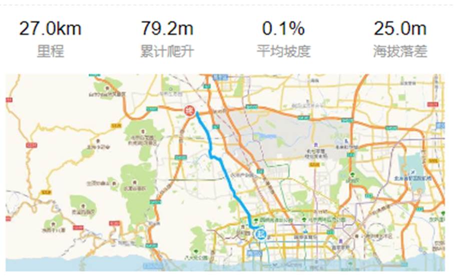 骑行时间:休闲骑,配速≥15km/h,预计2小时(单程)