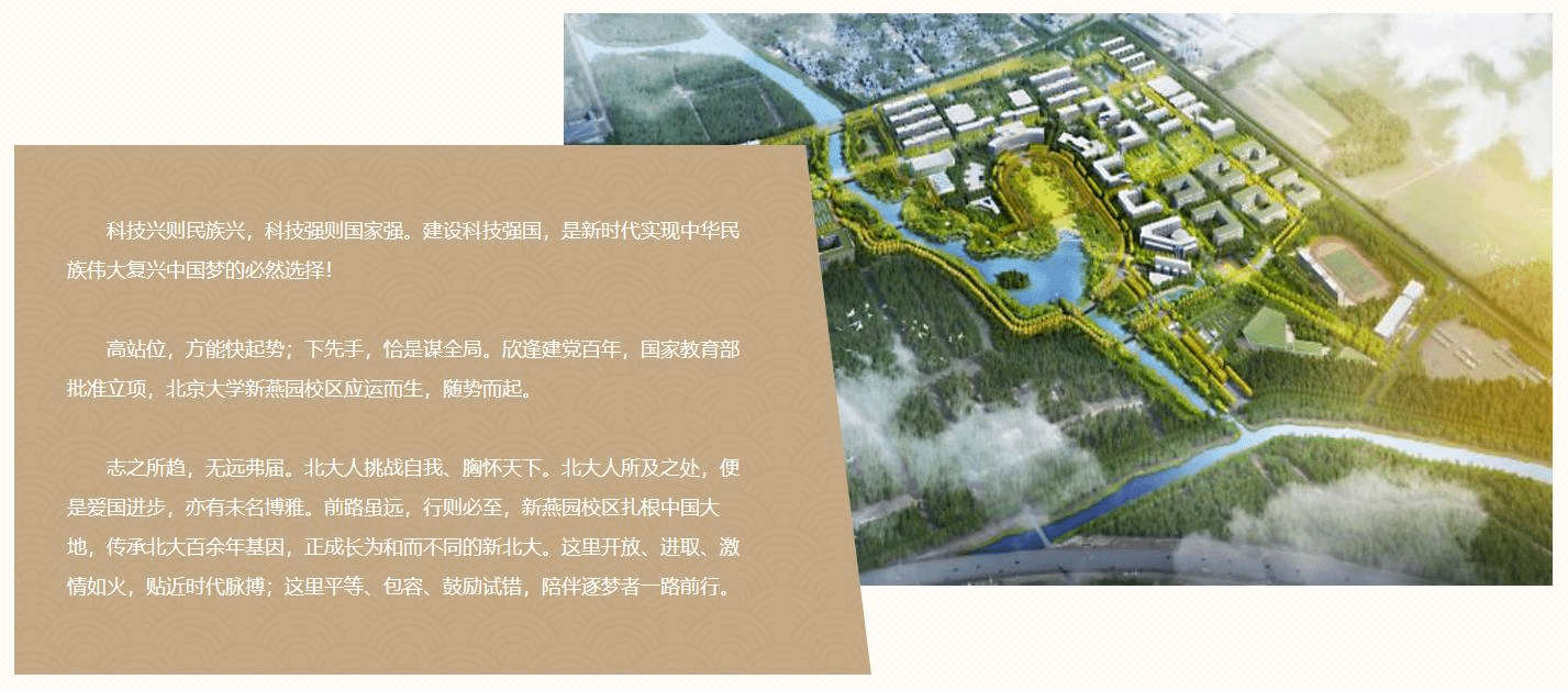 教育者,非为已往,专为将来。实现高水平科技自立自强,唯有面向未来,方能破茧成蝶。北大常为新,始终以探求民族未来为己任,矢志构建适应变革要求的创新生态系统,期以兼容并包之义,收百川归海之效。新燕园校区将面向国家重大需求,聚焦前沿科学和未来技术,凝聚世界顶尖师资研究团队,培养科技创新人才,开展有组织基础研究,突破“卡脖子”关键核心技术,推动产业转化,打造应用示范特区,引导国际工程科技深刻变革。