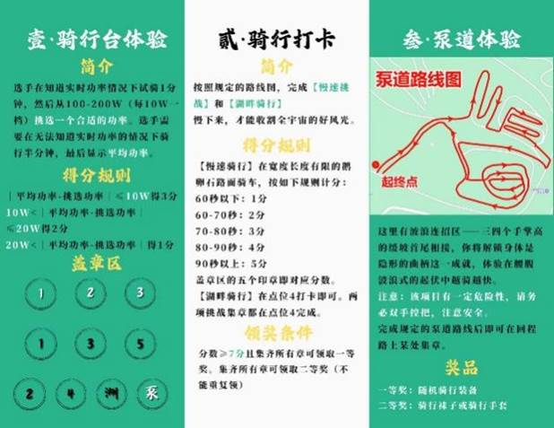 功率骑行台挑战:参与者在知晓实时功率的情况下试骑1分钟,随后凭体感选择目标功率骑行,考验功率控制能力。