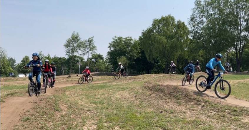 多元体验赛道体系 作为华北地区首个国际标准自行车主题公园,兴安湖以“生态+运动”为特色,拥有5.9公里柏油骑行道与8公里徒步彩沥路,可提供泵道、山地环线、岩石重力道、技巧赛道、环湖公路等16种不同的骑行体验。大家先后体验了包括泵道、山地环线、岩石重力道、环湖公路等中高难度赛道。泵道的波浪式起伏设计与山地赛道的技术点挑战,让参与者深度感受骑行运动的速度与激情。“在泵道上体验腰腹发力的节奏感,这种技术性赛道对体能和技巧都是考验。”大家在体验后感叹。