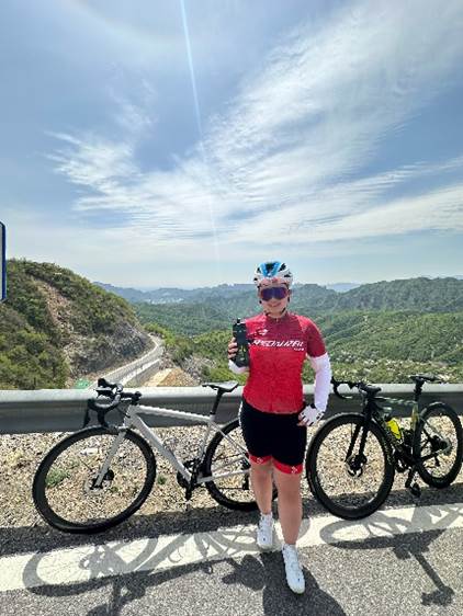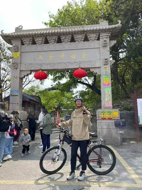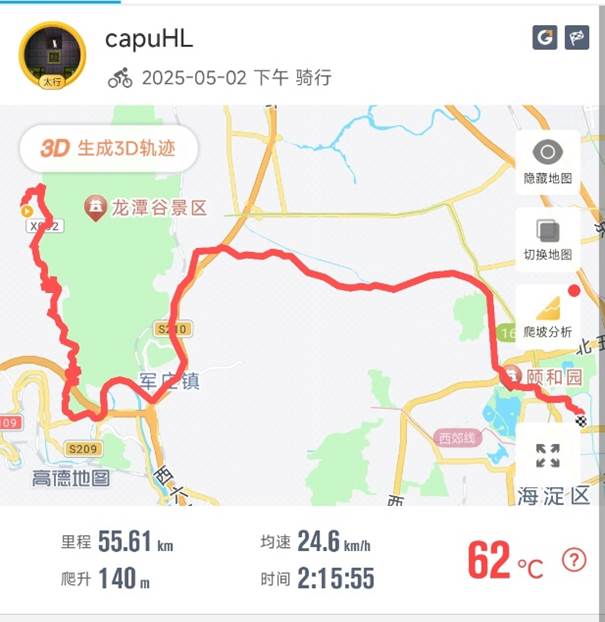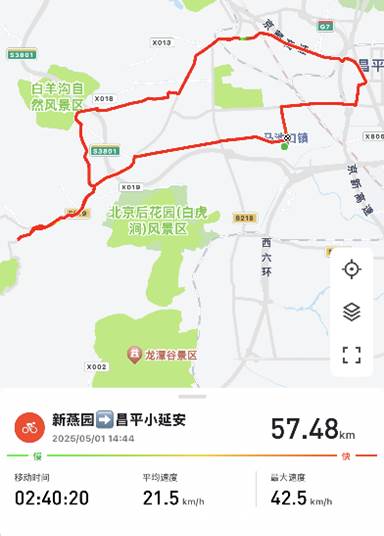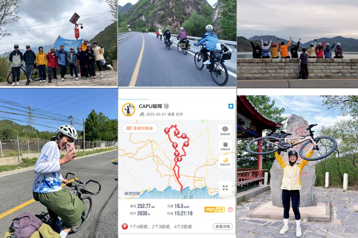 【15号-校办-李蓉老师-骑行天堂】,自学院路出发,沿京藏高速辅路北上,穿昌平城区,直抵“骑行天堂”延寿镇。山间公路蜿蜒如带,槐香漫道,我们在“十八盘”坡道上并肩爬坡,汗水浸透衣襟时,校友笑谈当年实验室熬夜改论文的“爬坡史”;俯冲而下时,山风裹挟着松涛掠过耳畔,仿佛重回燕园夜跑未名湖的飒爽时光。延寿镇观景台俯瞰,梯田叠翠与红墙村落相映成画,恰如母校兼容并蓄的气度。往返90公里,车轮丈量的不仅是京郊山水,更是与校友重逢的温暖——那些在燕园共同度过的求知岁月,此刻都化作车轮转动的默契。骑行终会抵达终点,但对母校的热爱,永远在路上。