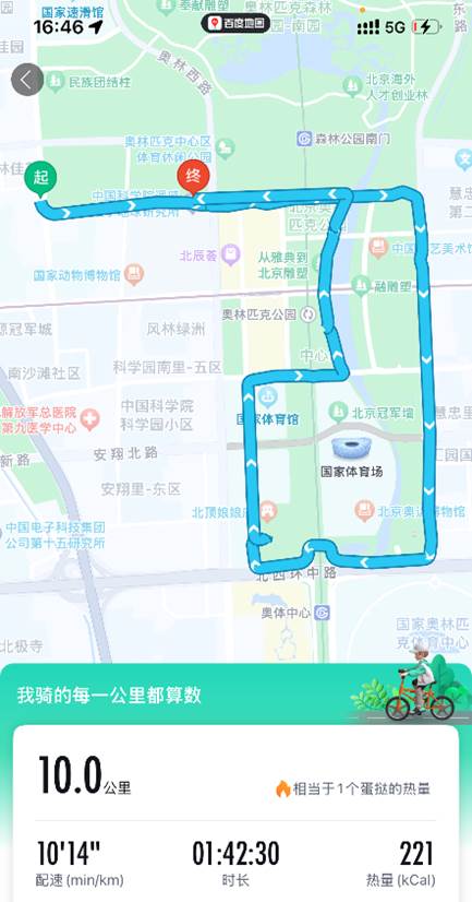 【114号-马克思主义学院-任杰同学-鸟巢】,与室友一起从学校骑行到天安门,再从北四环回学校。