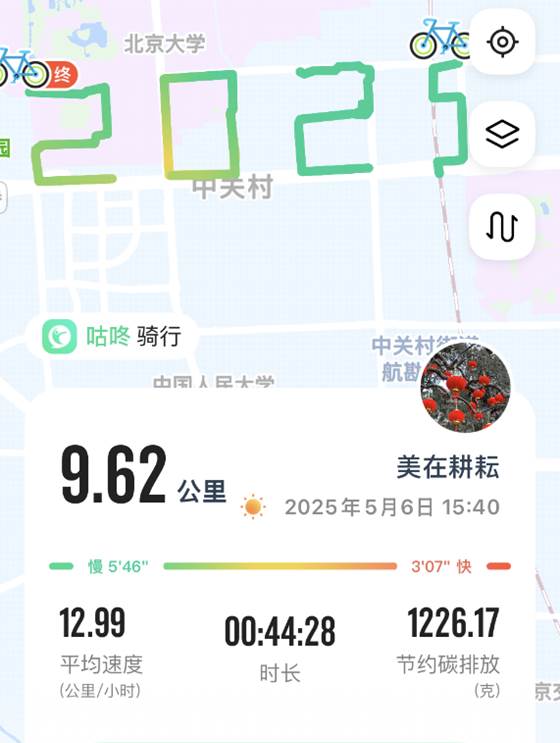 车轮滚滚丈量热土,赤诚之心献礼校庆。2025年北京大学建校127周年校庆之际,一场以“骑迹燕园,共赴山海”为主题的线上骑行挑战赛燃动燕园。自5月1日活动启动以来,全校师生热情响应,,累计骑行里程13606公里,提交优秀轨迹作品205份,用飞驰的车轮书写对母校的热爱与祝福。