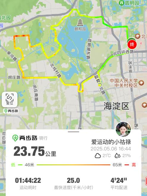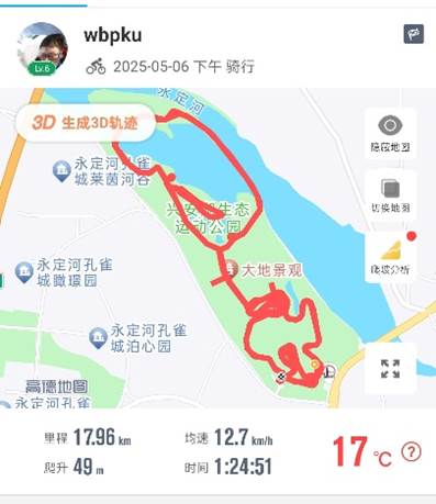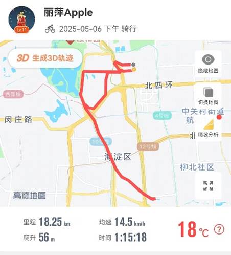 【181号-化学院-闫丽萍老师-紫竹园】,祝福北大127周年生日快乐,骑行北大2025轨迹,探寻南旱河绿道,三山五园绿道,从北大到紫竹园公园沿河路一路畅通,骑行过五一,开心。