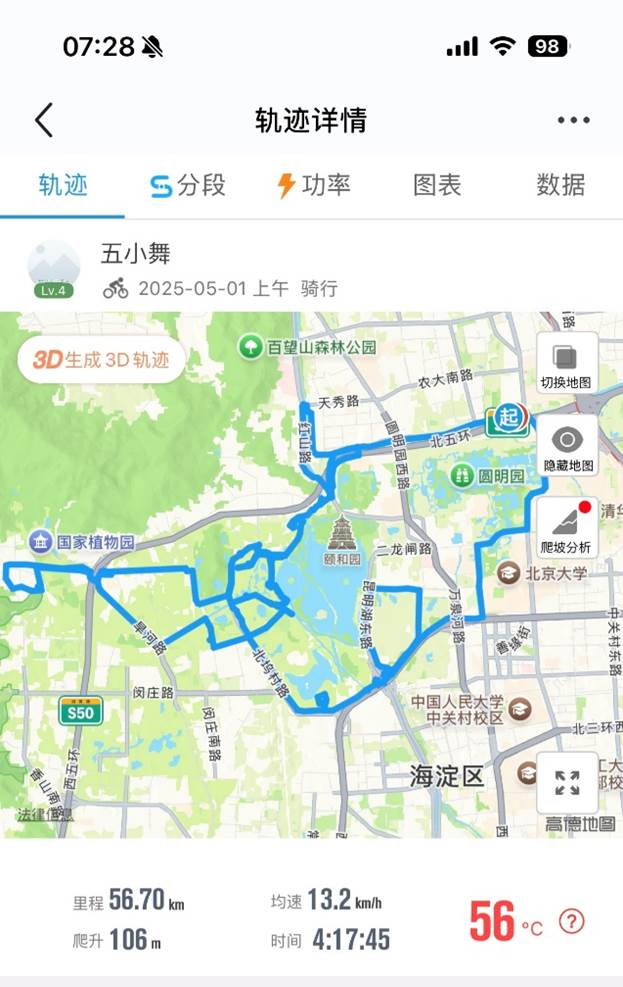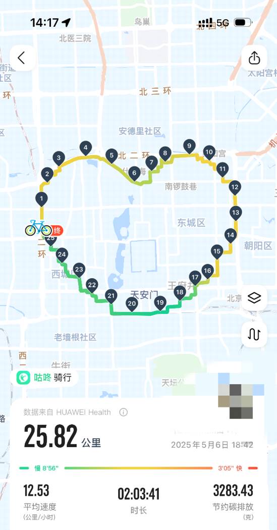 【78号-物理学院-吴成印老师-骑行四环】,北京大学建校127周年,完成单人挑战!
