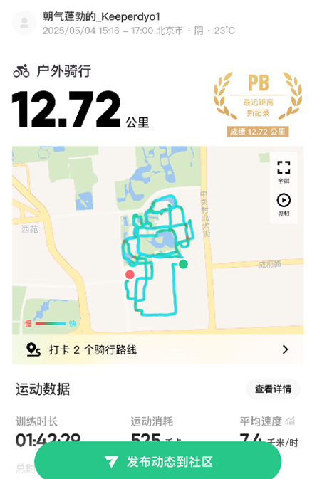 【137号-国关-陈芳老师-亲子骑行】,与骑行户外小搭子一起完成挑战,祝福北大127岁生日快乐!