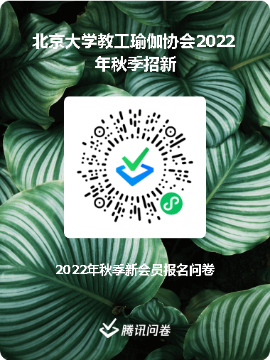 请新会员填写注册报名问卷(小程序码如下),可由瑜伽社团老会员邀请进瑜伽社团微信群,待群管理员确认后即可一起愉快练习啦~