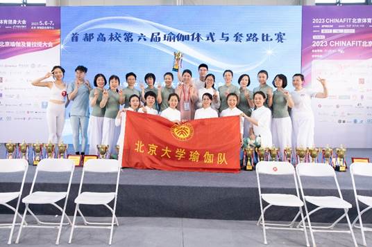 自协会成立以来,一直积极报名参加首都高校瑜伽比赛,已经连续参加了五届并且获得了非常优异的比赛成绩。2023年5月7日,北京大学教职工瑜伽协会积极准备并参加了首都高等学校第一届体育运动大会暨首都高等学校第六届瑜伽体式与套路大赛,最终荣获教职工大集体比赛和小集体比赛双项冠军。整个比赛备赛期间,参加备赛的协会老师们认真训练,合作改进编排动作,克服教学科研工作繁重的任务,利用工余时间、周末及假期时间排练,不断习练精进,最终发挥出高超的水平,以优异的成绩展现出北大老师们坚定的信念、扎实的训练以及阳光健康的精神风貌。