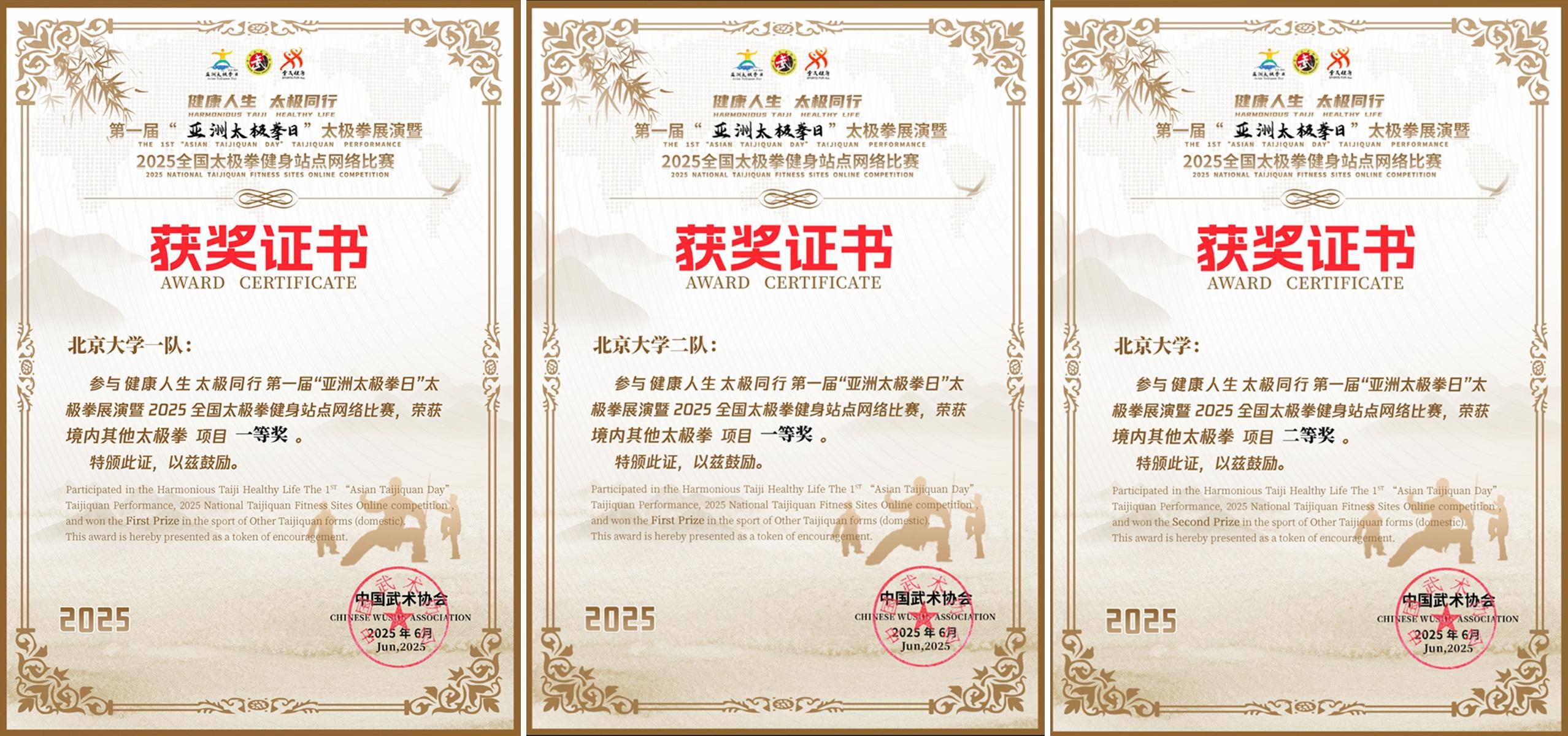 在首届“亚洲太极拳日”赛事中,北京大学未名太极社不负众望,派出的三支代表队在2181支全球参赛队伍中脱颖而出,一举斩获2个一等奖、1个二等奖的优异成绩。这份成绩的背后,是数月如一日的的刻苦训练,也是师生们对太极文化的执着追求与深情热爱。