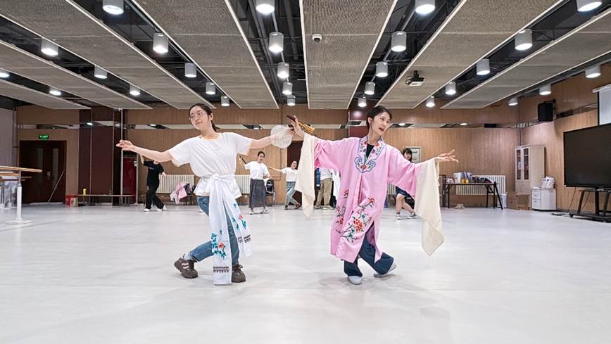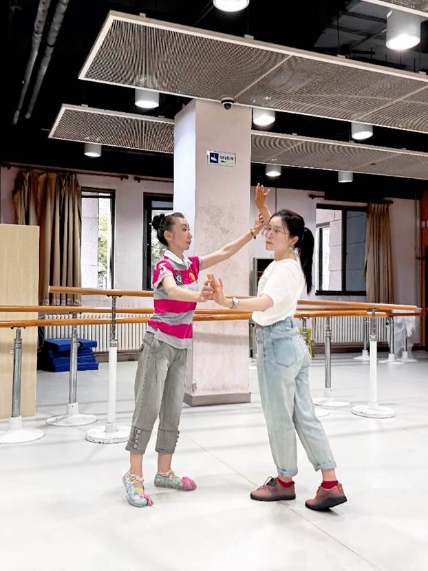 昆曲的每一个动作都不仅仅是肢体语言,更是一种文化符号。学术研究中有一种"cultural kinetics"概念即文化动力学,与昆曲动作一招一式中蕴藏着的文化传递动态过程不谋而合,这种动态过程恰好能够将中华文化的力量、美感和情绪处理方式,通过每一个动作、眼神和姿态展现出来。也就是在这种酸酸痛痛的肌肉记忆中,参训学员们更深入体会到此前的授课老师包括汪世瑜、王瑾、王丽媛、潘晓佳老师等,他们看似轻易的一转身一回眸、一弹指一挥扇、一颦一笑、一嗔一赧,其中的美与雅流转的是中国古典美学追求的和谐与平衡,通过他们日复一日的具身艺术对话,能够传达出最自然美好的情感和故事。