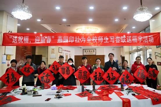 时维腊月,岁近龙终蛇始;节届嘉年,序临腊尽春回。燕园印社骨干走进万柳校区、圆明园校区,举办了两场“送祝福,迎新春”活动,为园区师生送上新春祝福。