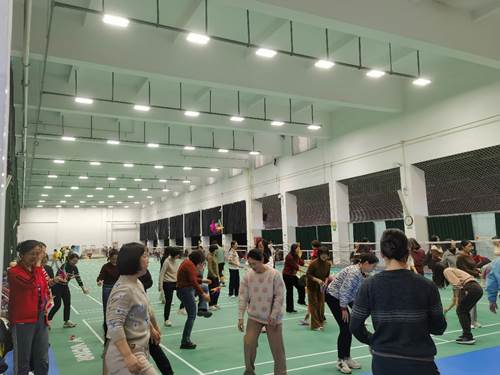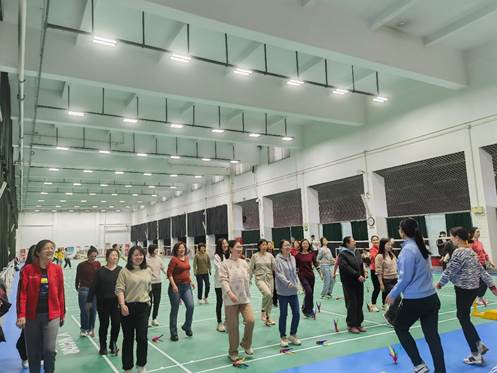 随后进行自由练习,“盘踢、磕踢、外落、上顶……”大家在一次次的踢毽中逐渐掌握了一些基本技巧,毽子在空中飞扬的次数越来越多,场馆里洋溢着大家的欢声笑语。