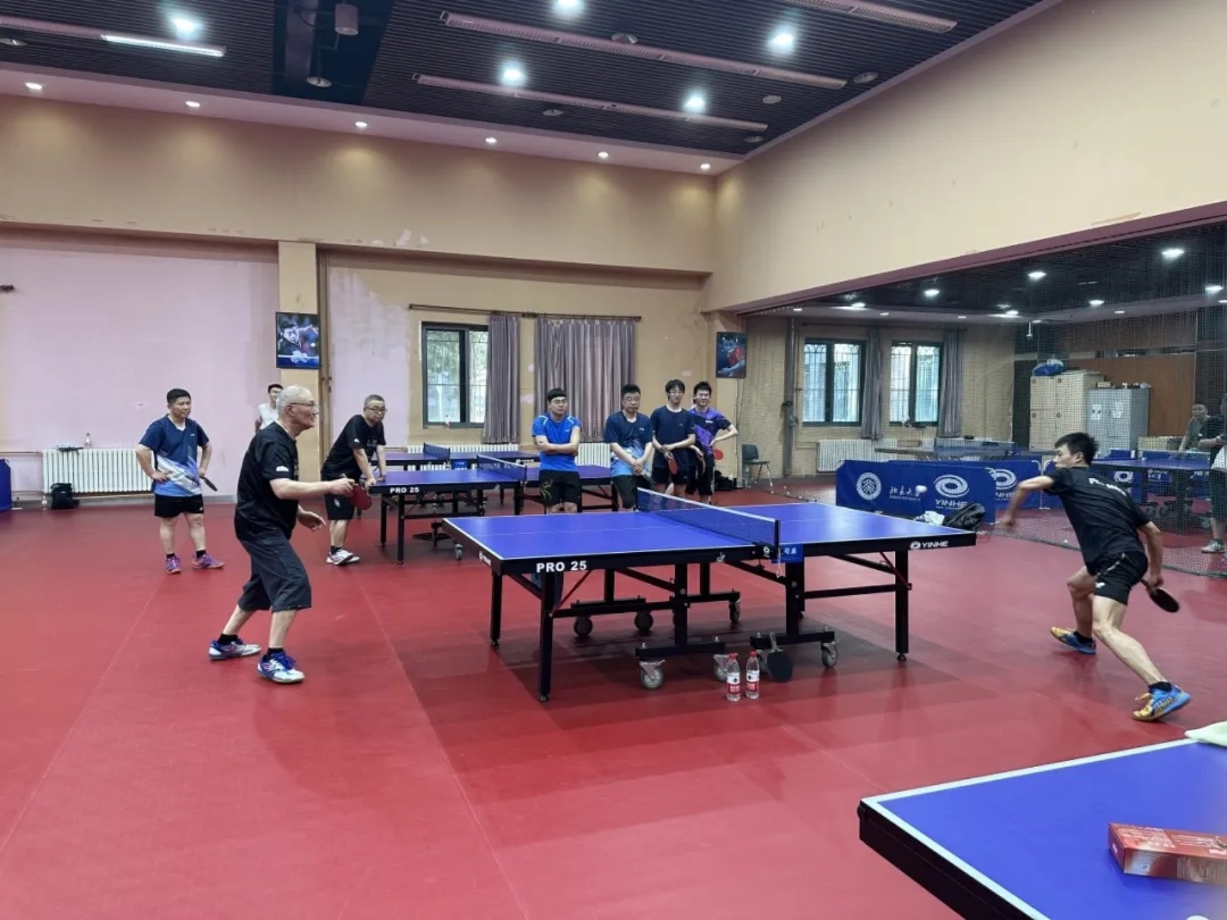 本次师生赛共有4位老师、16位同学参赛,现场抽签随机分为10队(老师不同队),5队一组共A、B两组,随后进行小组循环赛,小组第一第二出线产生四强,再进行半决赛,决赛决出冠亚军。