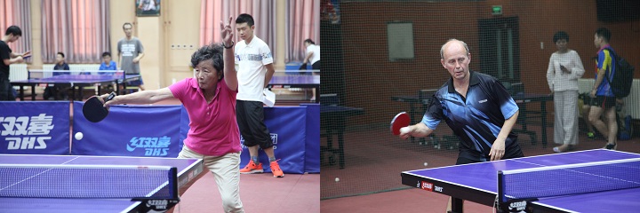 本届学生队以校队队员琚玮领衔,实力出众。老师队除头号主力刘张炬教授外,其他主力队员也几乎全部出席。不过更值得一提的是两位特殊的参赛者。一位是76岁的叶抗生老师,她虽已近杖朝之年,但仍然常年坚持体育锻炼。在与青年同学的“性别大战”中,她稳健的搓球和犀利的正手抢攻屡屡得分,令观众们连连惊叹。另一位是“外援”,来自法国高等师范学院的Olivier Debarre教授。身为国际知名复代数几何学者的他,在乒乓球上也是一把好手,横板正反手的对拉颇见功底。两位老师在双败淘汰赛中均有胜利入账。尽管最终未能更进一步,但让在场所有人都留下了深刻印象。