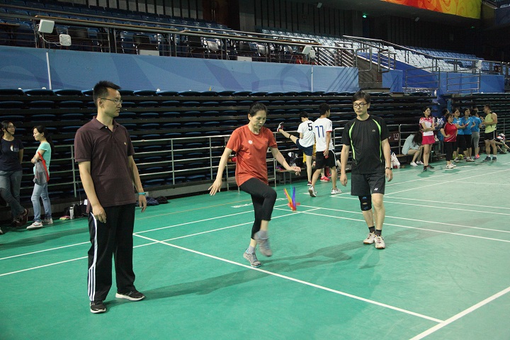 借着去年数学毽球队成功跻身前八的东风,数学学院工会本年度加大了组织力度,聚集了12位队员分成两队参加今年的比赛。其中数学二队的老师们基本上都是初次接触毽球这项运动,但在学院工会主席孙赵君老师的悉心指导与点拨下,大家很快就喜欢上了这项运动,并深深地投入其中。每一次发球入界,每一次回球过网,都在点点滴滴地积累着努力与成功的快乐。E组的6场小组赛中,5位老师陆续登场亮相,充分体验了比赛的节奏与气氛,为来年的比赛打下了良好的基础。
