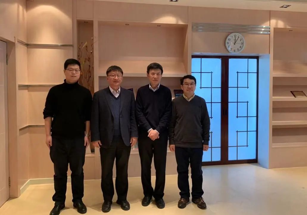 学术界的“四世同堂”:耿直(右二)、学生郭建华(左二,东北师范大学副校长)、郭建华的学生朱圣文(右一,东北师范大学数学与统计学院副院长)、朱圣文的学生王鹏飞(左一,东北财经大学)