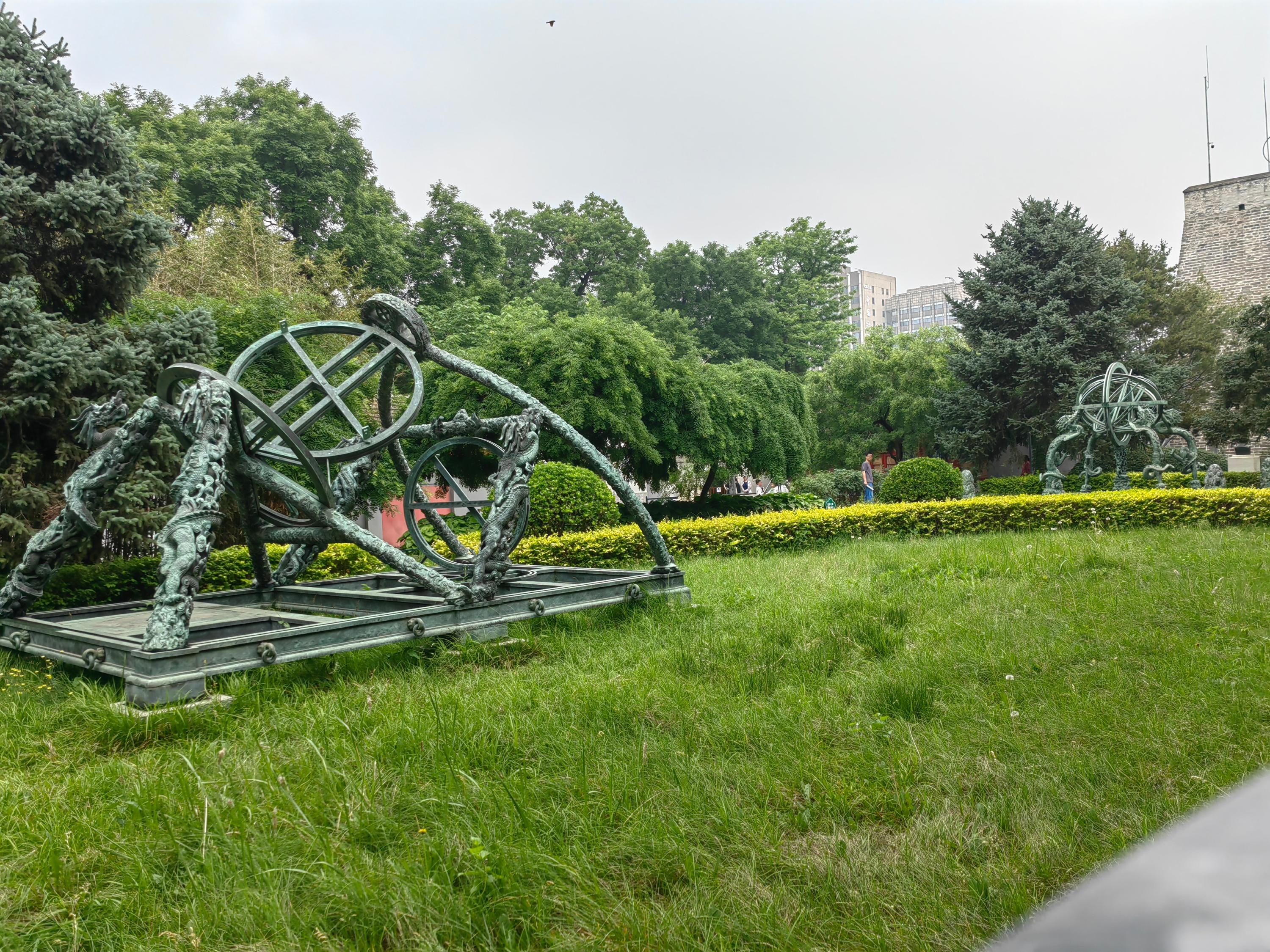 1900年八国联军入侵北京,德国抢占浑仪、玑衡抚辰仪等五件仪器,放于波茨坦皇家花园内;法国抢走了简仪、地平经纬仪等五件仪器。直到1921年,十件仪器才重新归还至古观象台。至今地平经纬仪上当初留下的弹孔仍在诉说那段内忧外患、充满屈辱的历史。