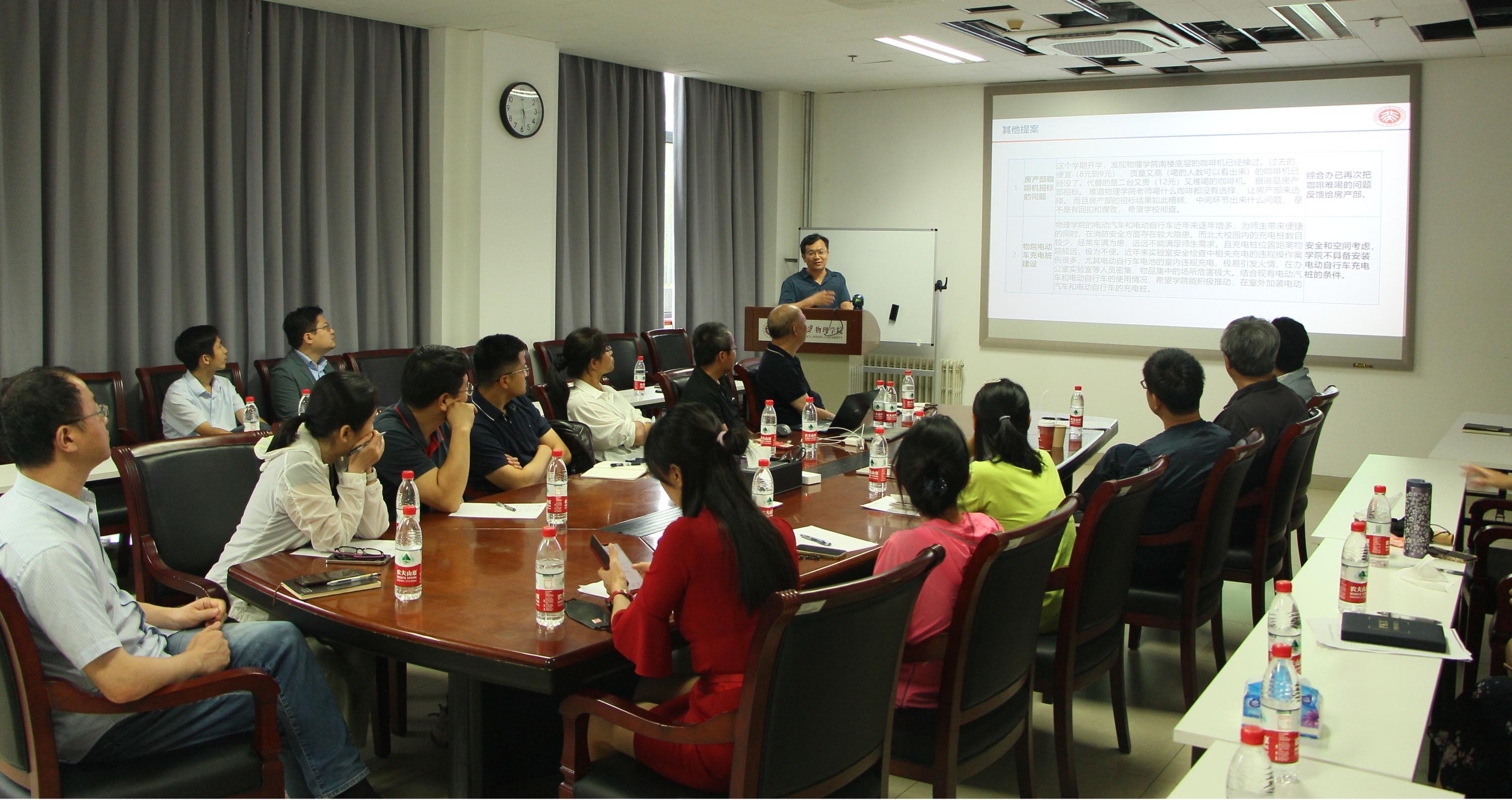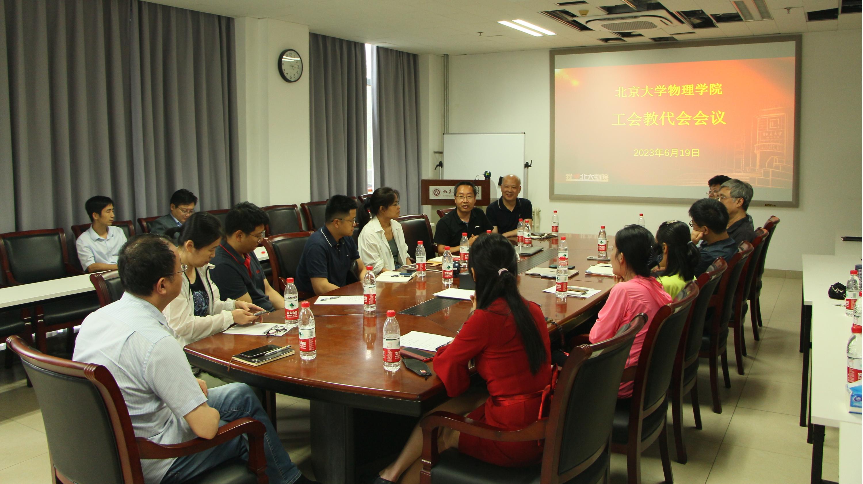 2023年6月19日下午,北京大学物理学院工会与教代会在学院大楼西113室召开会议。学院院长高原宁、党委书记刘雨龙等学院党政领导出席了会议。会议由院党委副书记、工会主席李焱主持。