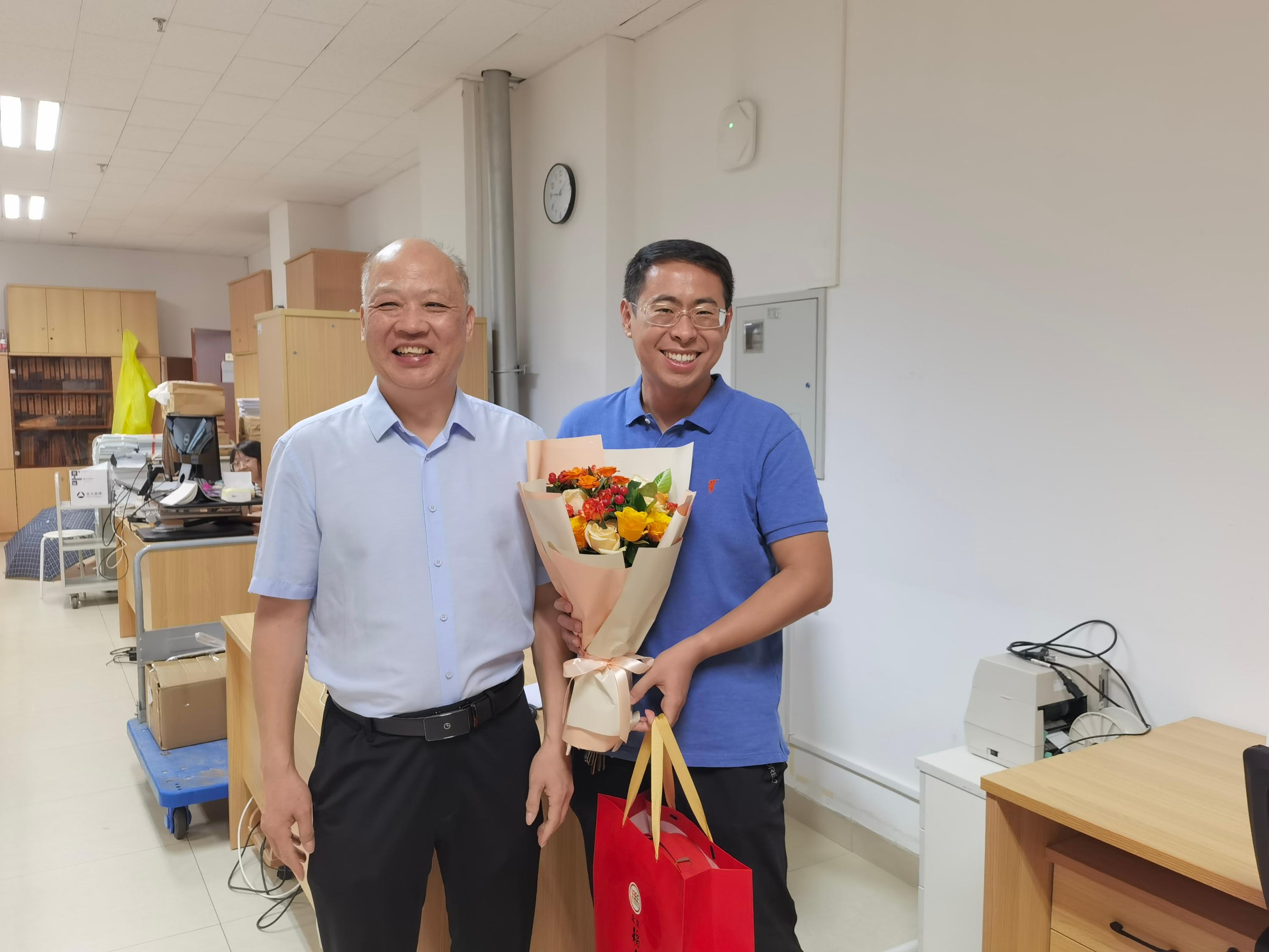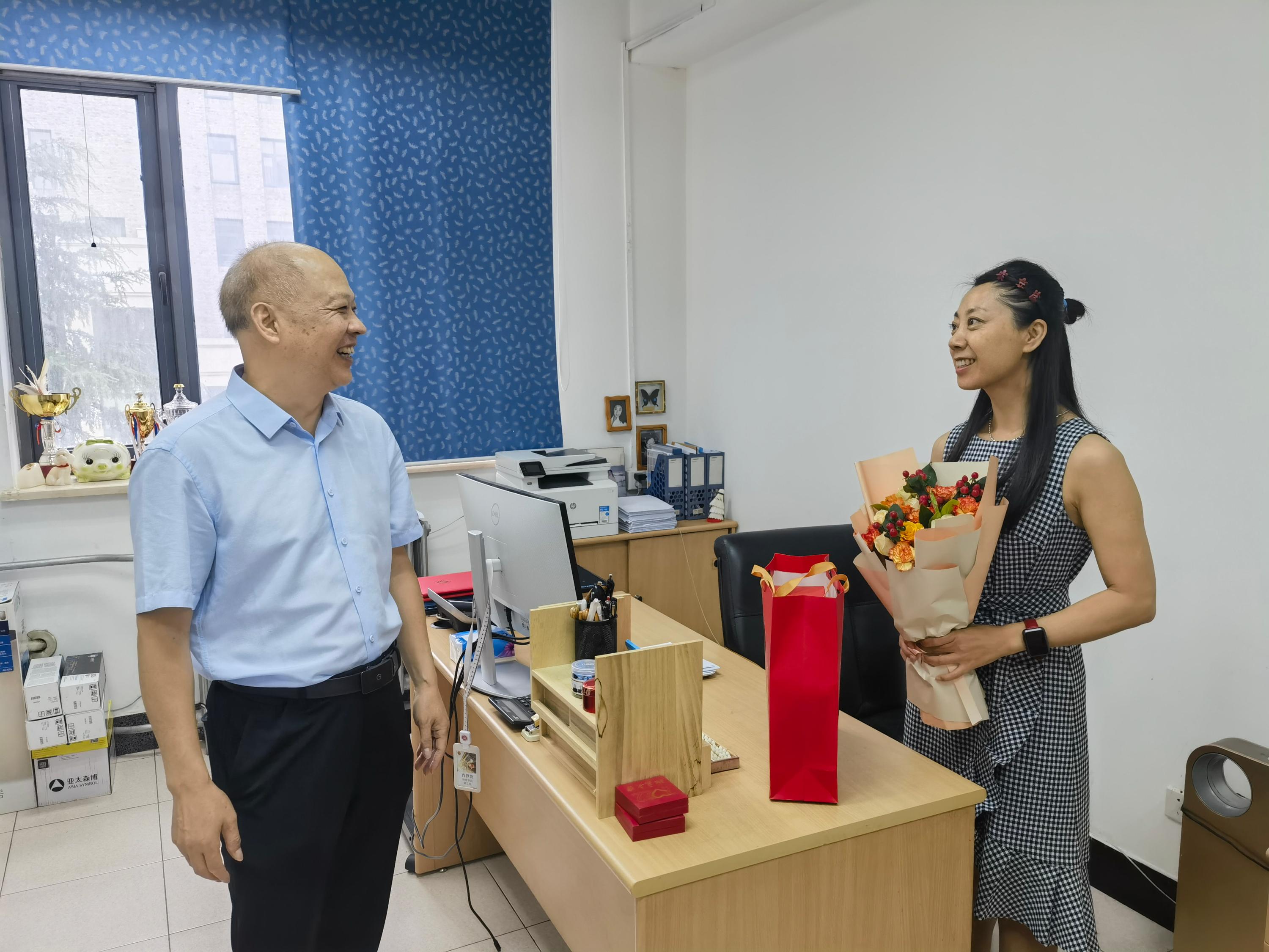 2023年9月8日,在即将到来的第三十九个教师节前夕,物理学院党委副书记、工会主席李焱和副主席刘国超、刘黎黎一起,慰问了学院工会活动骨干:人工微结构和介观物理国家重点实验室的肖静波老师和学院科研交流办公室的张志科老师。