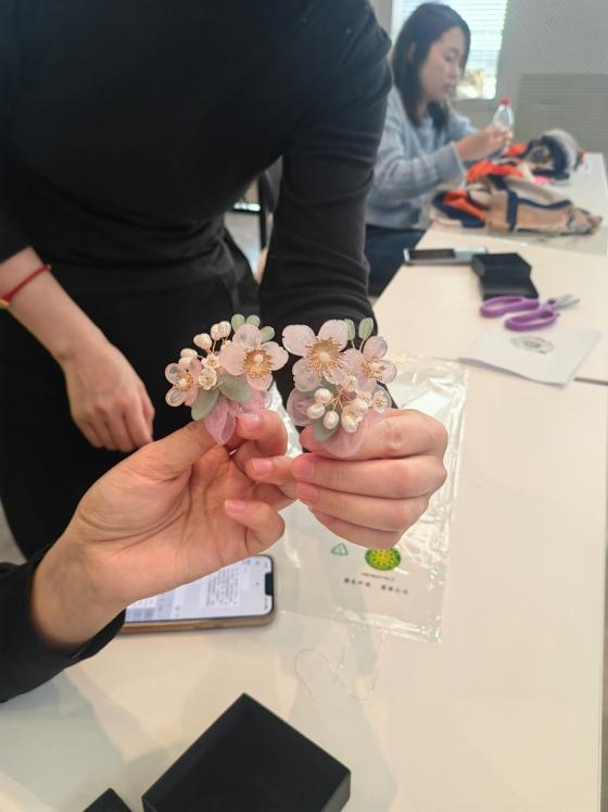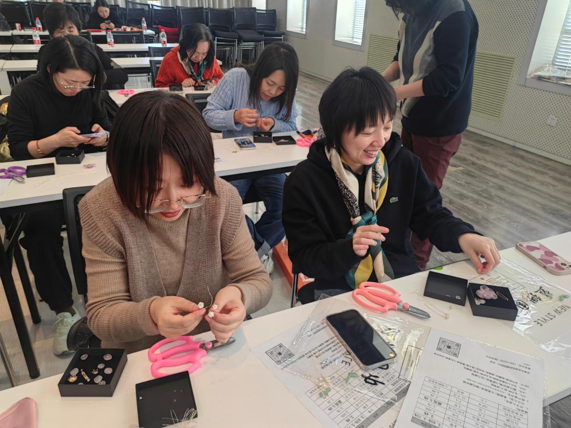 庆祝活动的下半场,学院邀请到拾年花房带领到场的女教职工制作精美的手工胸花。大家都十分用心地学习和实践制作流程,每一个手工胸花都是她们对美好生活的向往和追求,也是对自己的一种肯定和鼓励。