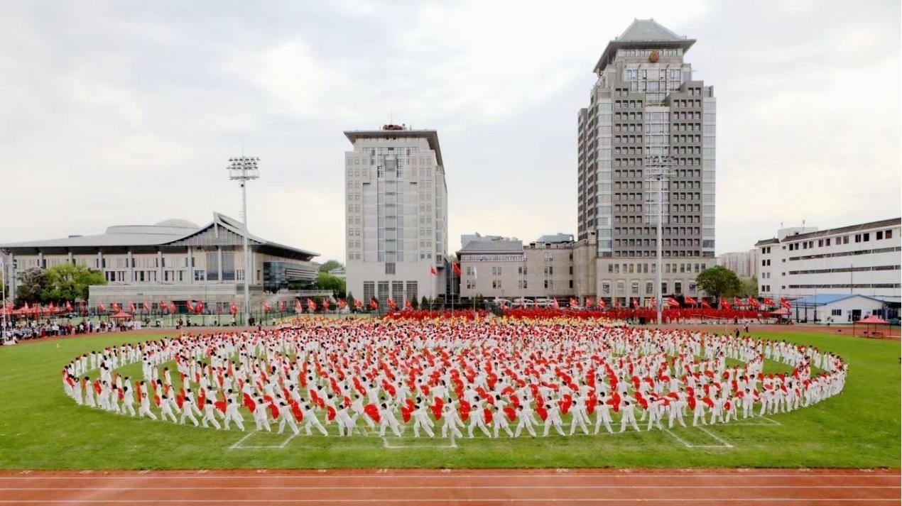 经过多次学院内练习和四次全校合练,由55位老师组成的物理学院团体操方队闪亮登场。