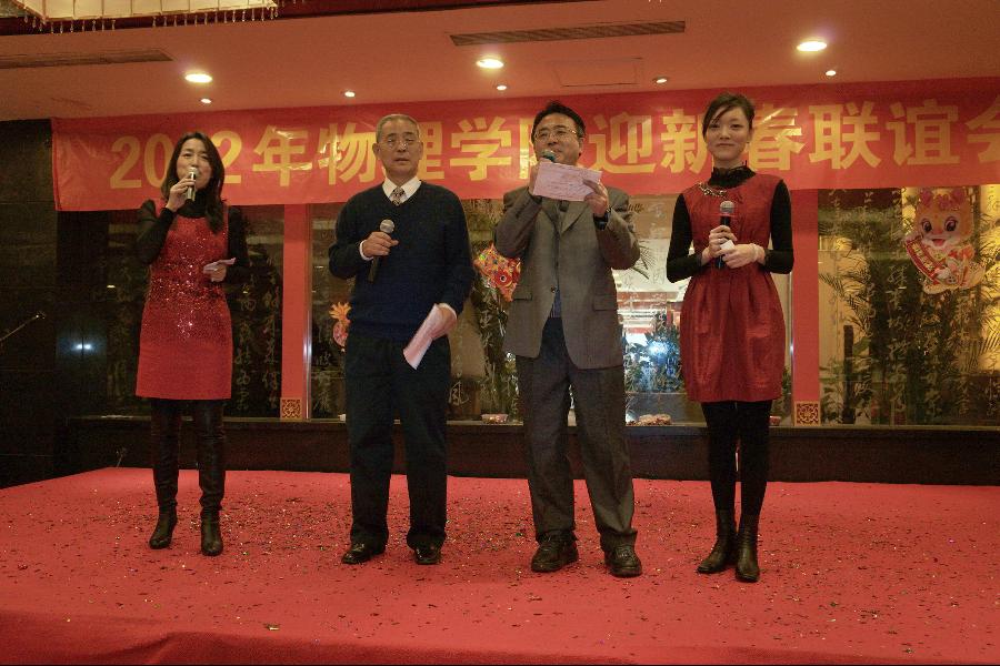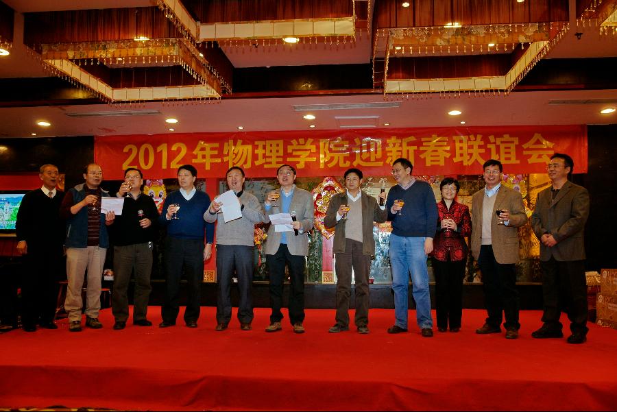 首先,院党委副书记郑涛宣布联谊会开始,院长谢心澄和书记陈晓林致新年贺词,祝愿大家在新的一年里开拓创新、再创佳绩、身体健康、阖家欢乐!并感谢老师们在过去的一年里为学院发展所做出的贡献。接着谢心澄、陈晓林、沈波、刘玉鑫、王宇钢、朱星、董晓华、郑涛、刘树华、胡永云老师高举酒杯,向全体教职工拜年。大家相互祝愿,一派欢乐祥和的景象。