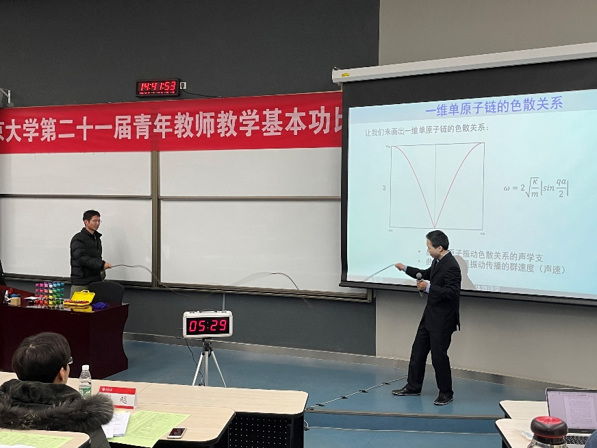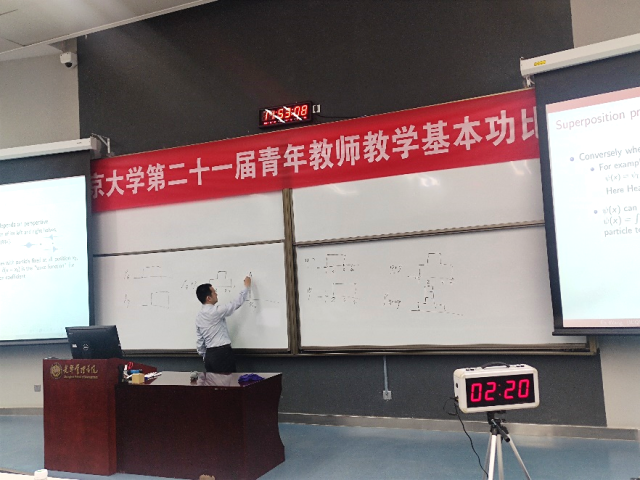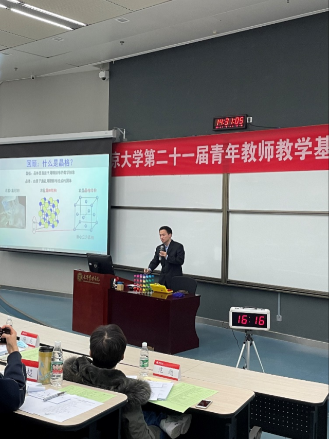 凝聚态物理与材料物理研究所陈基老师结合图文并茂的PPT、教具展示及板书,对《计算物理导论》中的《玻恩-奥本海默近似》进行了讲解,荣获一等奖、“优秀教案奖”和“最佳教学演示奖”三大奖项。