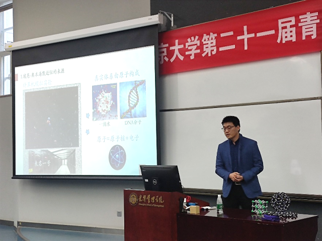 大气与海洋科学系聂绩老师讲解了《流体力学》当中的《涡旋运动 涡束》,荣获二等奖。精彩的现场展示吸引了学生评委们,荣获“最受学生欢迎奖”。