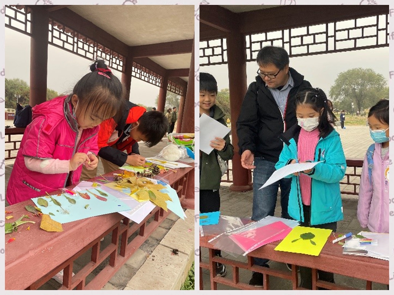 比赛结束后,小朋友们用之前拾到的树叶开始了自己的创作。孩子们充满创造力的作品,再一次让爸爸妈妈们惊喜不已。