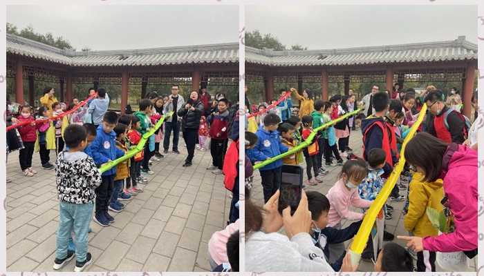 10月29日下午,圆明园的藻园门内,虽然正值疫情,但仍有不少游人来到圆明园欣赏美丽的秋景,一大群孩子的欢笑声吸引了大家的目光。从小学高年级的大哥哥大姐姐,到坐在婴儿车里的小弟弟小妹妹,来自三十多个家庭的不同年龄段的小朋友参加了本次活动。